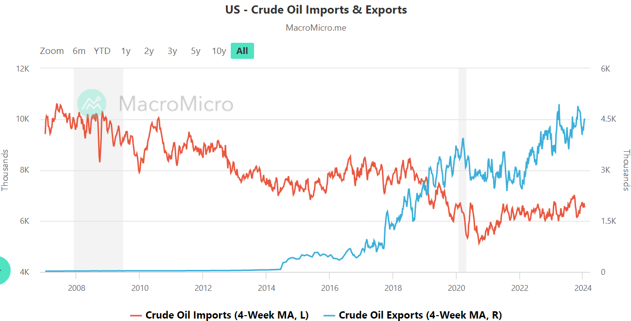 Nhìn rộng lớn hơn, Mỹ bây giờ mặc dù vẫn tiêu thụ 20% nhu cầu dầu Thế giới, nhưng đã trở thành nước xuất khẩu dầu mỏ có sức ảnh hưởng lớn tới thế giới từ năm 2019, khi xuất khẩu>nhập khẩu.